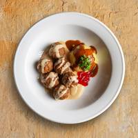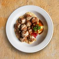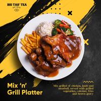 Mix grilled of chicken, lamb and beef meatball served with grilled vegetables, coleslaw, fries and brown gravy.