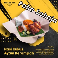 Steamed rice topped with curry gravy and served with well marinated grilled chicken and sambal belacan.