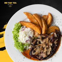 Succulent grilled lamb served with sauteed vegetables, coleslaw, fries and brown gravy.