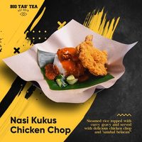 Steamed rice topped with curry gravy and served with delicious chicken chop and sambal belacan.