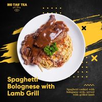 Spaghetti pasta in rich bolognese sauce served with succulent grilled lamb.