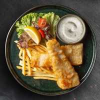 Crunchy coated chicken topped with tasty cheese served with fries, coleslaw and brown gravy.