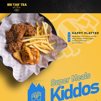 Tasty fried chicken marinated with sweet and spicy Korean paste, served with fries.