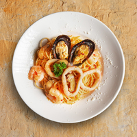 Spaghetti pasta cooked with garlic, chilli flakes, and secret season sauce served with delicious seafood
